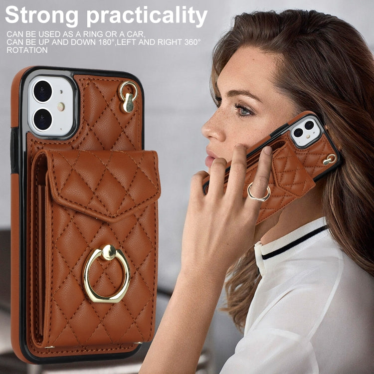 Funda para Teléfono iPhone 11 Rhombic Texture Card Bag con Cordón Largo (Marrón)