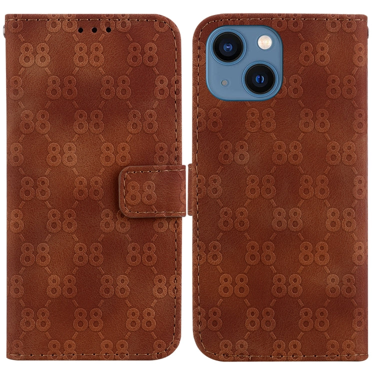 Estuche para Teléfono iPhone 14 Cuero En Relieve Doble Forma de 8 (Marrón)