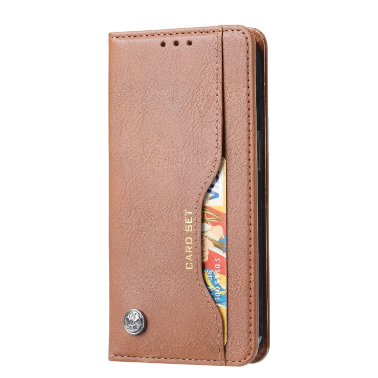 Funda para iPhone 14 Cuero con Tapa Horizontal Textura Piel Amasada (Marrón)