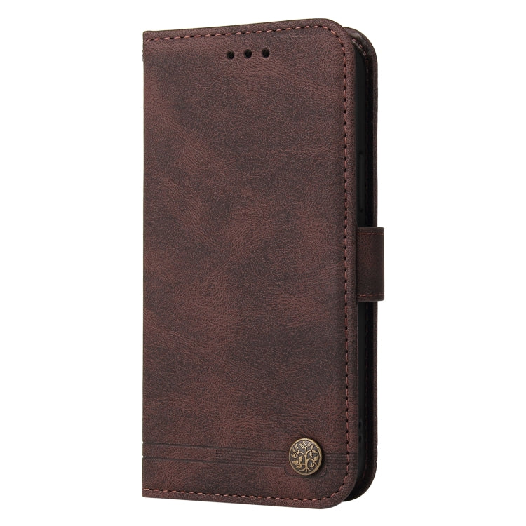Funda de Cuero para iPhone 14 Skin Feel Life Tree Función Protectora (Marrón)