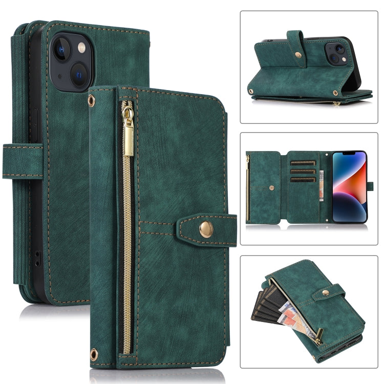 Funda para teléfono iPhone 14 Dream 9-Card Wallet Zipper Bag de Cuero (Verde)