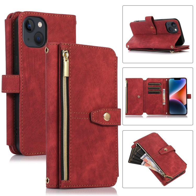 Funda de Cuero para Teléfono iPhone 14 Dream 9-Card Wallet Zipper Bag (Rojo)