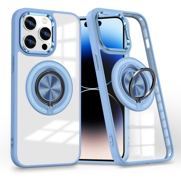Funda para Teléfono iPhone 14 Pro Soporte Anillo Giratorio Magnético (Azul Claro)