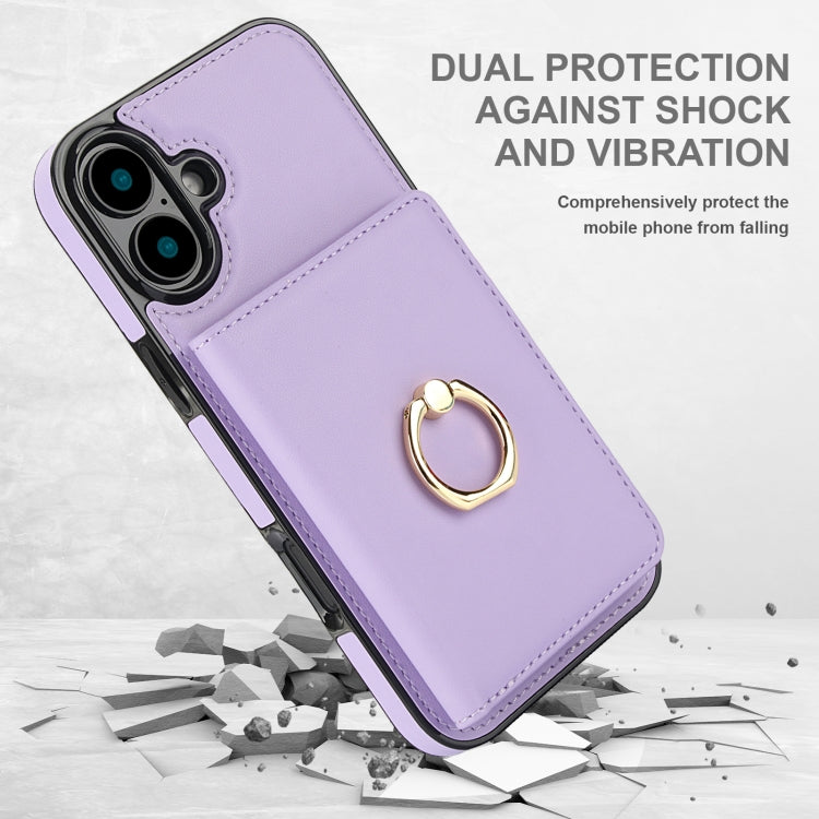 Funda para Teléfono con Anillo para Tarjeta Antirrobo Rfid iPhone 16 (Morado)