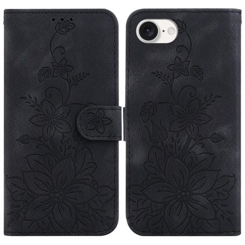 Funda de Cuero con Tapa para iPhone 16E Estampado Girasoles en Relieve (Morado)