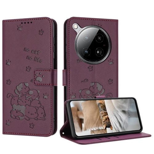 Funda de Cuero Infinix Zero 40 4G/5G con Diseño de Gatito y Cordón (Rojo Vino)