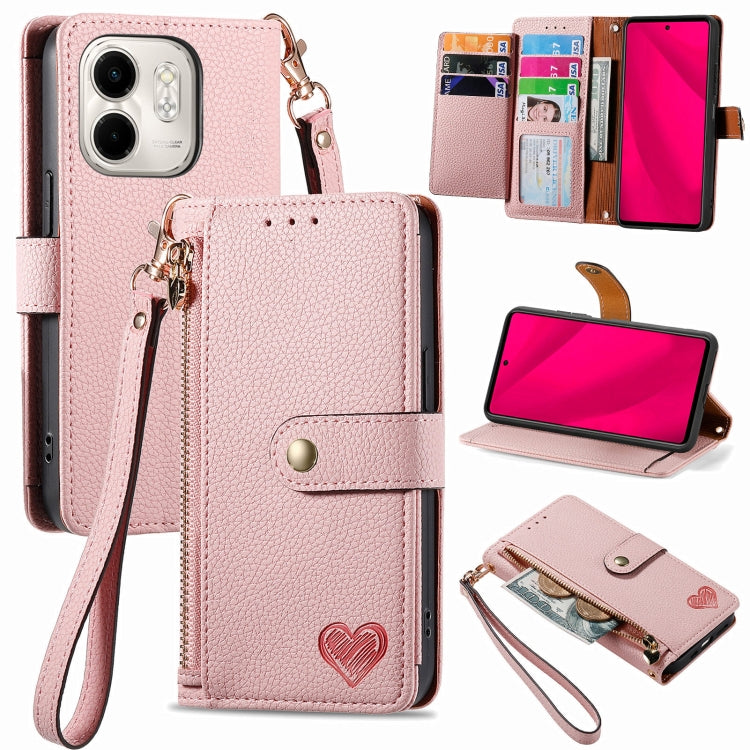 Funda de Cuero con Cordón y Cremallera Love para Infinix Smart 9 (Rosa)