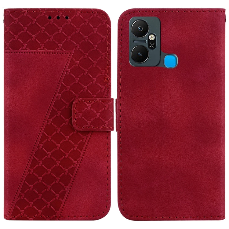 Funda de Cuero en Relieve en Forma de 7 para Infinix Smart 6 Plus (Rojo)