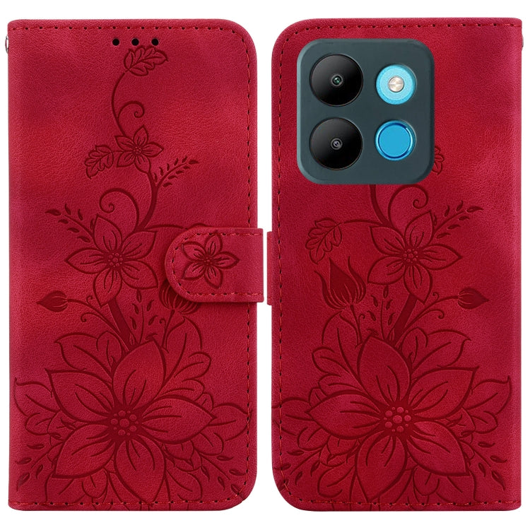 Funda para Teléfono Infinix Hot 30I X669C de Cuero con Relieve Lily (Rojo)