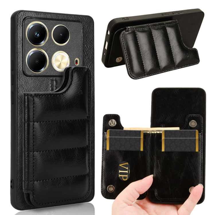 Funda para Infinix Note 40 4G con Bolsa para Tarjetas y Patrón de Vaca (Negro)