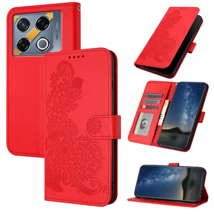 Funda de Cuero para Infinix Note 40 4G Datura Flower con Tapa en Relieve (Rojo)