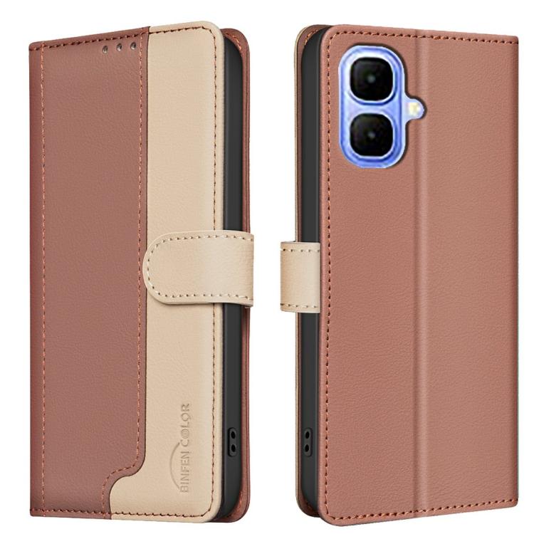 Funda de cuero antirrobo RFID a juego para Infinix Smart 10 4G (marrón)