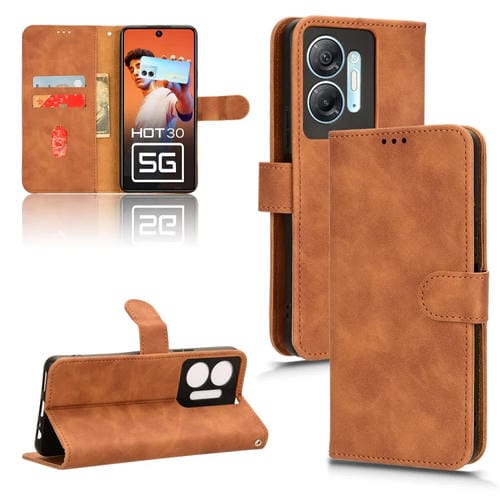 Funda de Cuero con Tapa Magnética para Infinix Hot 30 5G Skin Feel (Marrón)