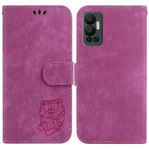 Funda de Cuero para Infinix Hot 12 con Relieve Little Tiger (Rojo Rosa)