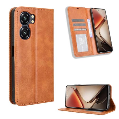 Funda de Cuero Oukitel C58 y C58 Pro Textura Retro Hebilla Magnética (Marrón)