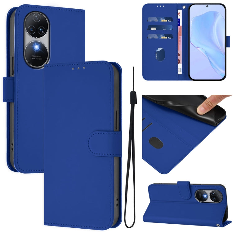 Funda de Cuero con Relieve Cabeza de Elefante para Itel A50 con Cordón (Azul Claro)