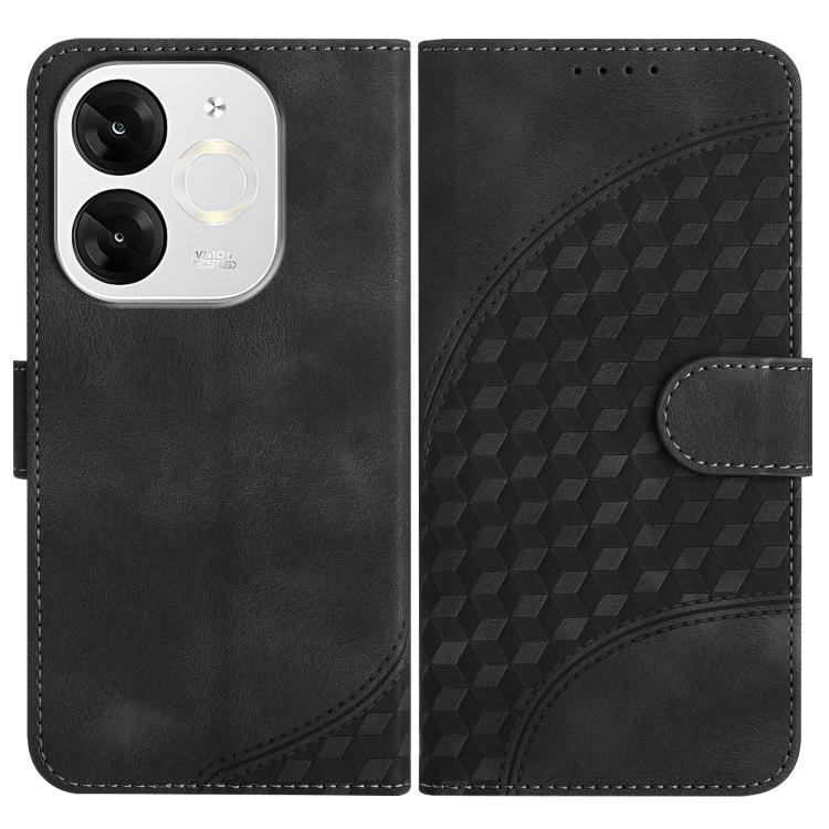 Funda de Cuero con Relieve Cabeza de Elefante para Itel S25 con Cordón (Negro)