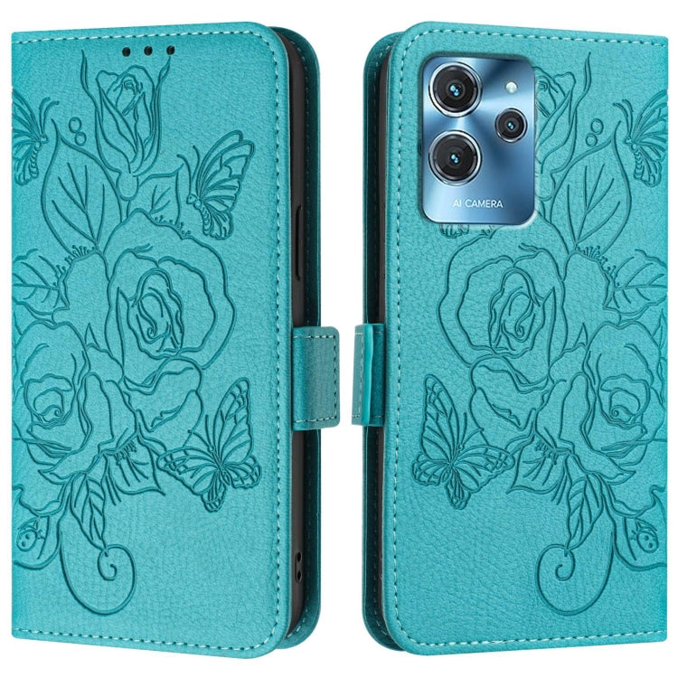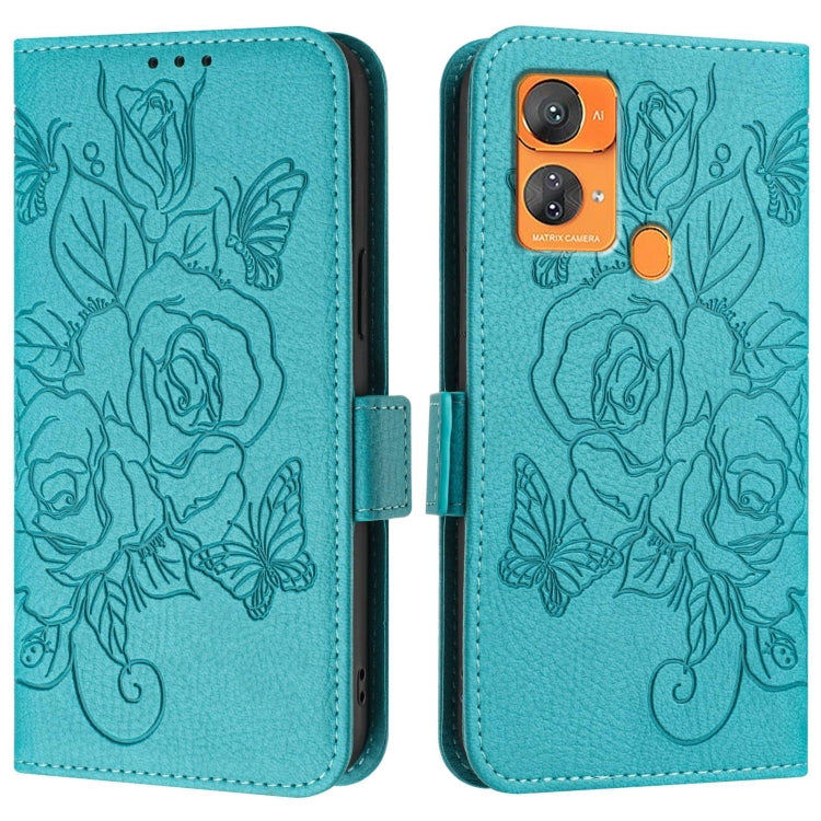 Funda para Oukitel C35 / C36 Cuero Antirrobo RFID con Rosa en Relieve (Verde)