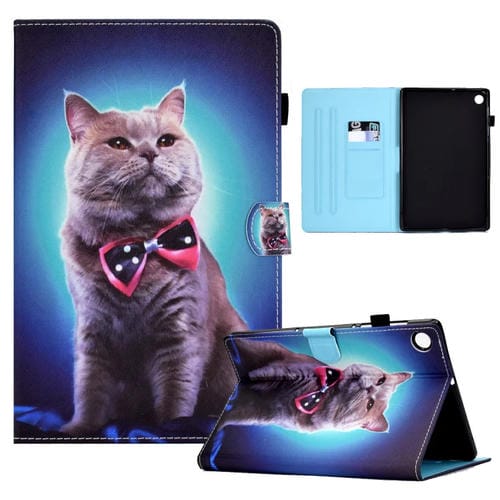 Funda para Lenovo Tab M10 con Coser Pen Slot y diseño Gato de la Corbata de Lazo