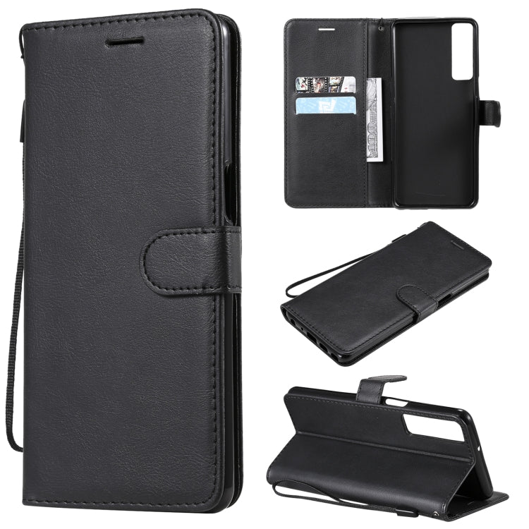 Funda Flip de Cuero para LG Stylo 7 5G/4G con Soporte, Ranuras y Cordón (Negro)