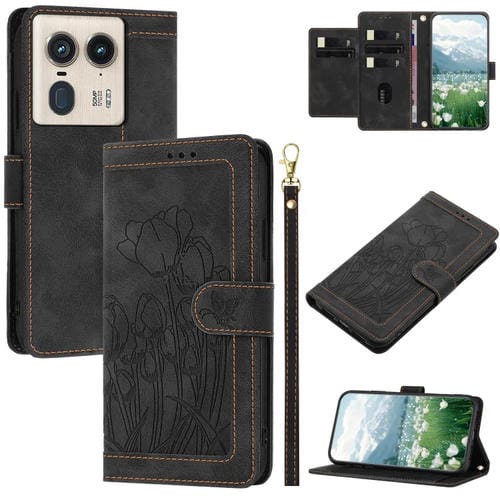 Funda de Cuero con Relieve de Tulipanes para Motorola Moto G84 con Cordón (Rojo)
