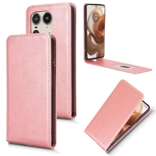 Funda de Cuero con Tapa Vertical Magnética para Motorola Moto G75 5G (Oro Rosa)