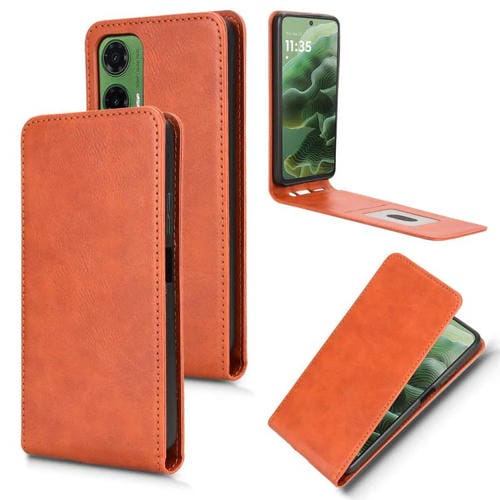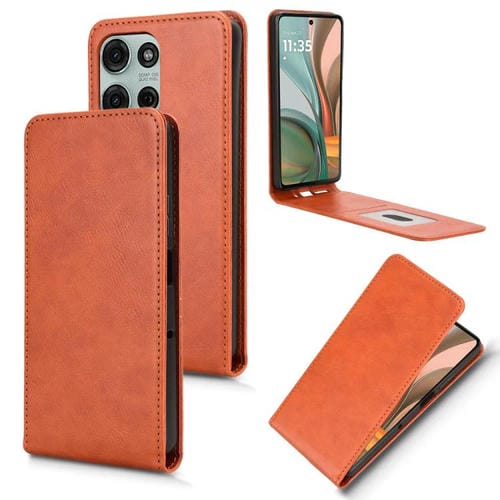 Funda de Cuero con Tapa Vertical Magnética para Motorola Moto G35 5G (Marrón)