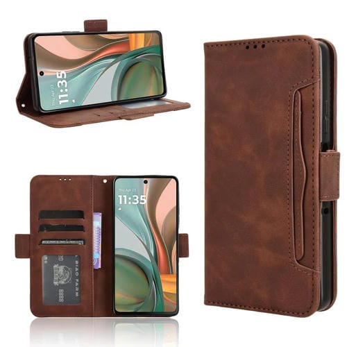 Funda de Cuero con Cremallera y Cordón para Motorola Moto G15 Nine Card (Marrón)