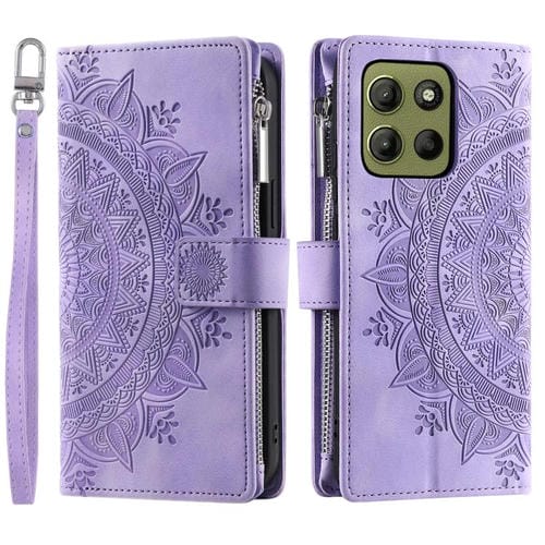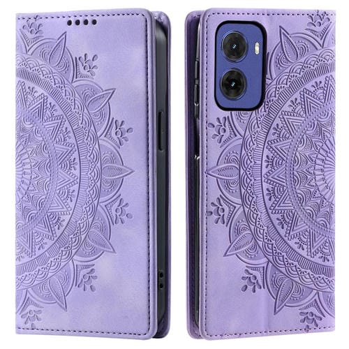 Funda de Cuero Magnética con Relieve Totem para Motorola Moto G05 (Morado)