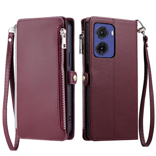 Funda de Cuero con Cremallera y Múltiples Tarjetas para Motorola Moto G05 (Rojo)