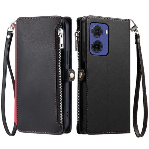 Funda de Cuero para Motorola Moto G05 Nine Card con Cremallera y Cordón (Negro)