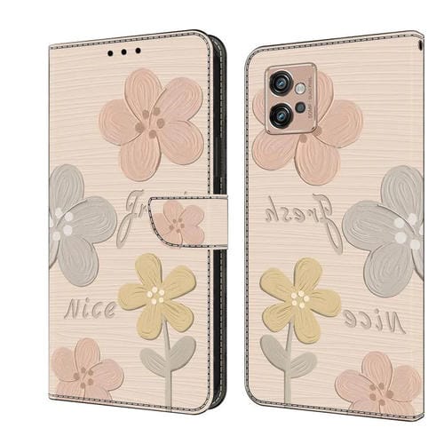 Funda de Cuero Pintada a Mano para Motorola Moto G62 5G (Flores Beige)