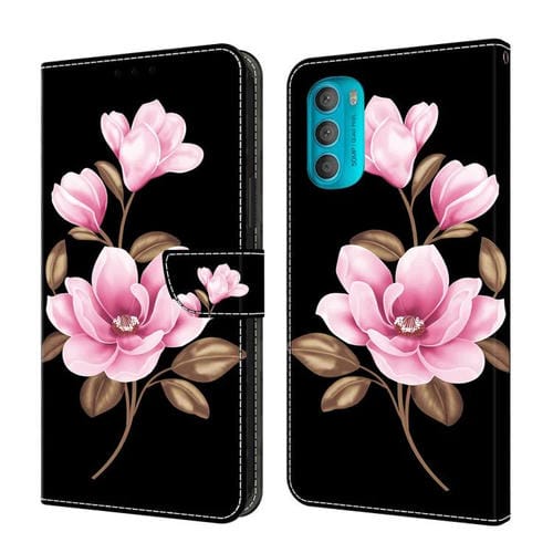 Funda de Cuero pintada a mano Motorola Moto G Play (2024) (Flores Negras)