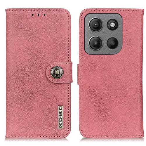 Funda de Piel de Vaca con Tapa para Motorola Moto G15 4G/G05 Khazneh (Rosa)