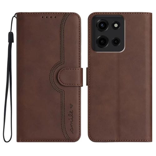 Funda de Piel con Diseño de Corazón para Motorola Moto G 2025 (Marrón)