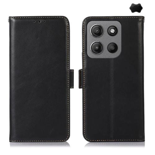 Funda de Cuero Genuino Crazy Horse Magnética para Motorola Moto G15 4G (Negro)