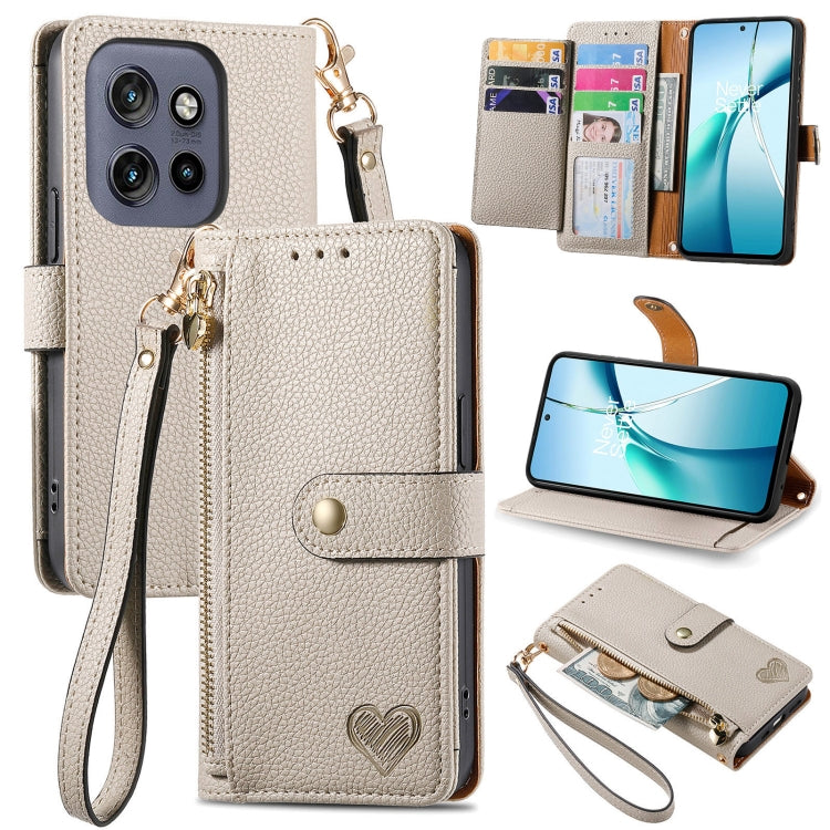 Funda de Cuero con Cordón y Cremallera Love para Motorola Moto G75 5G (Gris)