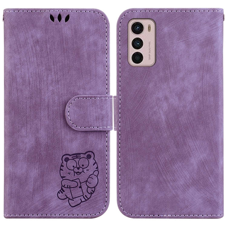 Funda de Cuero en Relieve para Motorola Moto G42 Little Tiger (Púrpura)