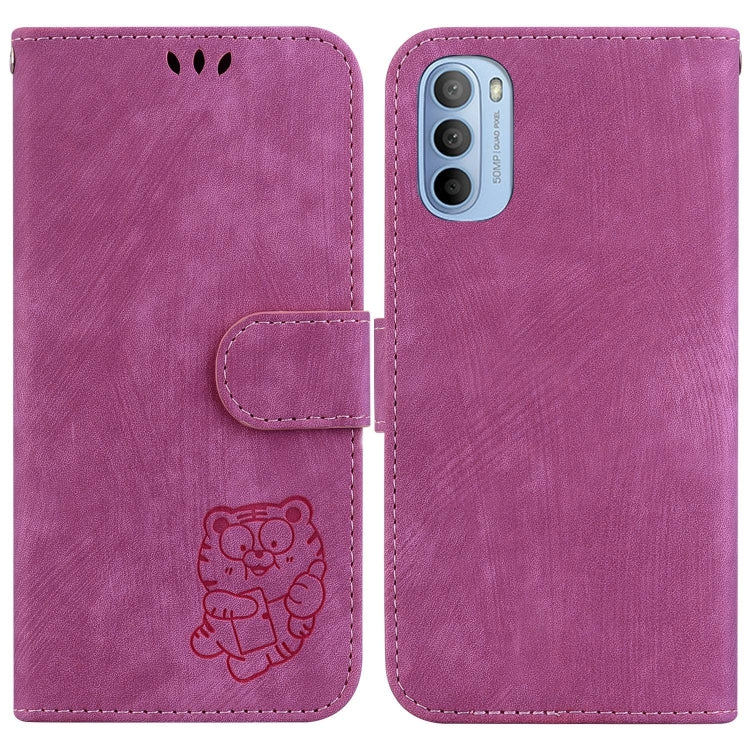Funda para Motorola Moto G31 / G41 de Cuero con Relieve Little Tiger (Rojo Rosa)
