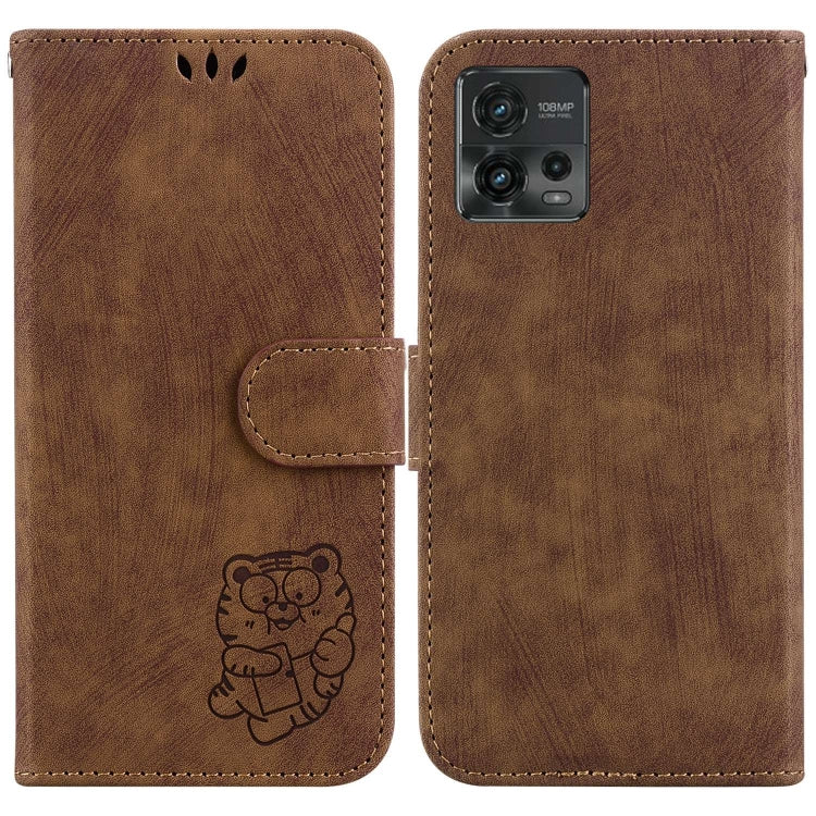 Funda de Cuero para Motorola Moto G22 Little Tiger en Relieve (Marrón)
