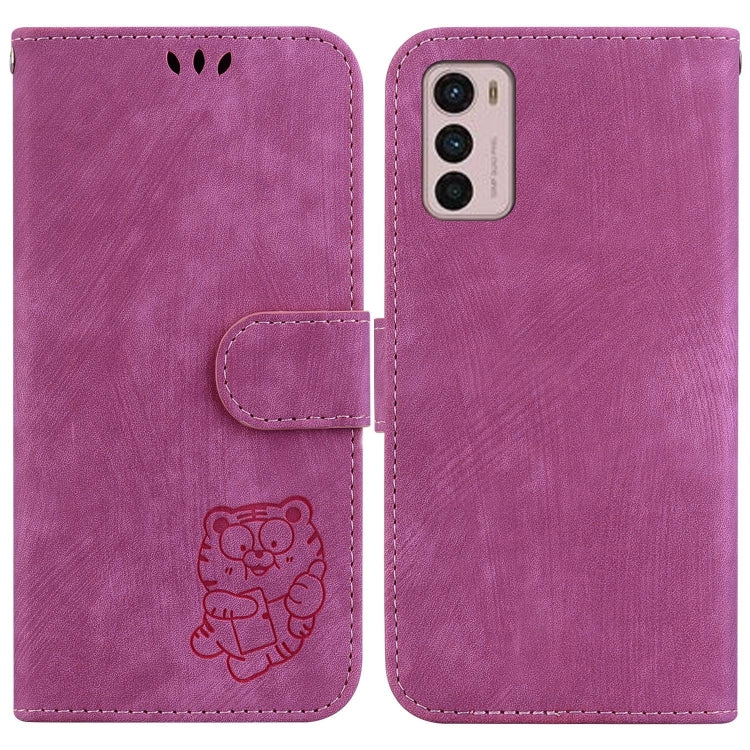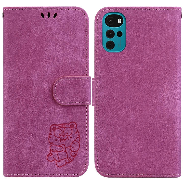 Funda de Cuero para Motorola Moto G22 con Relieve Little Tiger (Rojo Rosa)