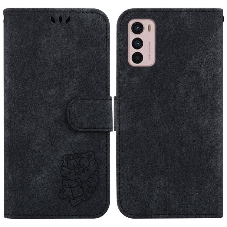 Funda de Cuero para Motorola Moto G42 con Relieve Little Tiger (Negro)