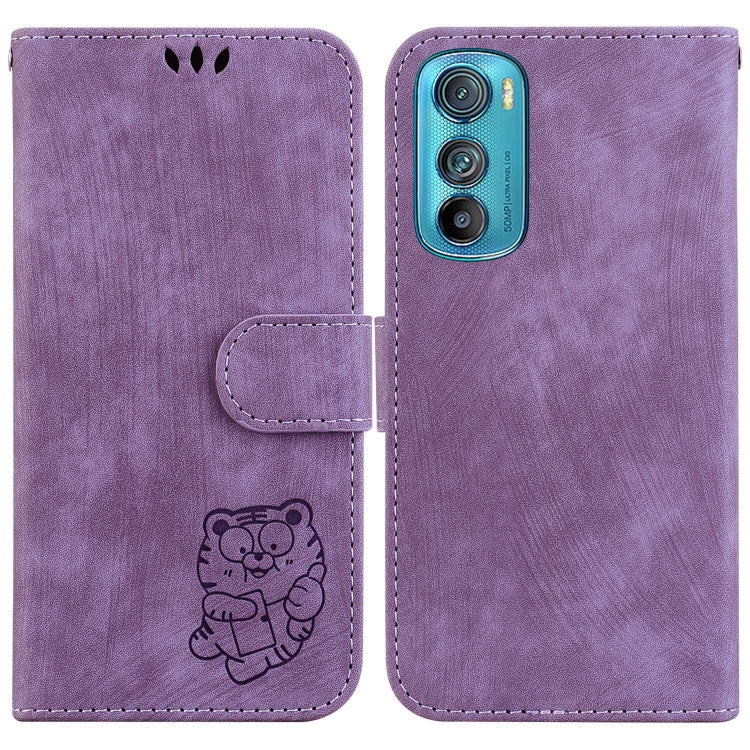 Funda para Motorola Edge 30 de Cuero con Relieve Little Tiger (Púrpura)