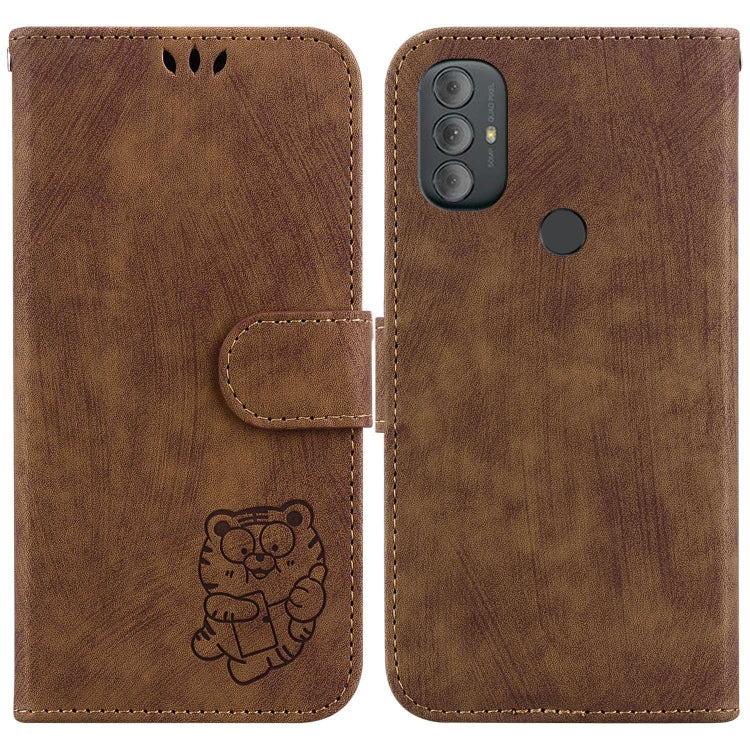 Funda para Motorola Moto G Power 2022 de Cuero con Relieve Little Tiger (Marrón)