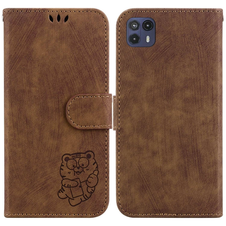 Funda para Motorola Moto S30 Pro 5G de Cuero con Relieve Little Tiger (Marrón)