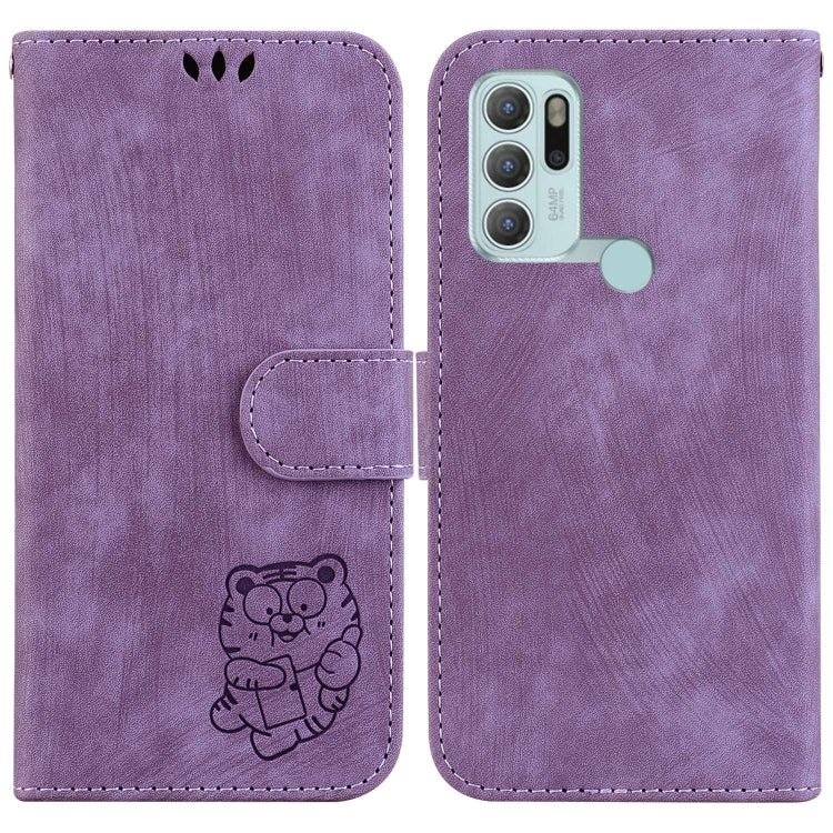 Funda de Cuero para Motorola Moto G60S Little Tiger con Relieve (Púrpura)