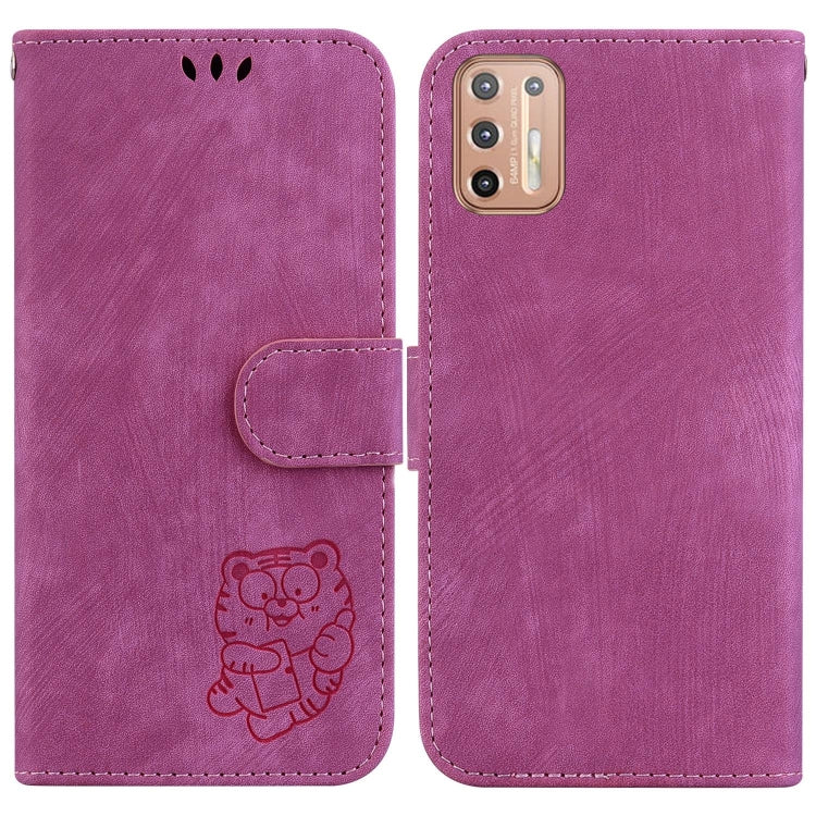 Funda de Cuero para Motorola Moto G9 Plus con Relieve Little Tiger (Rojo Rosa)