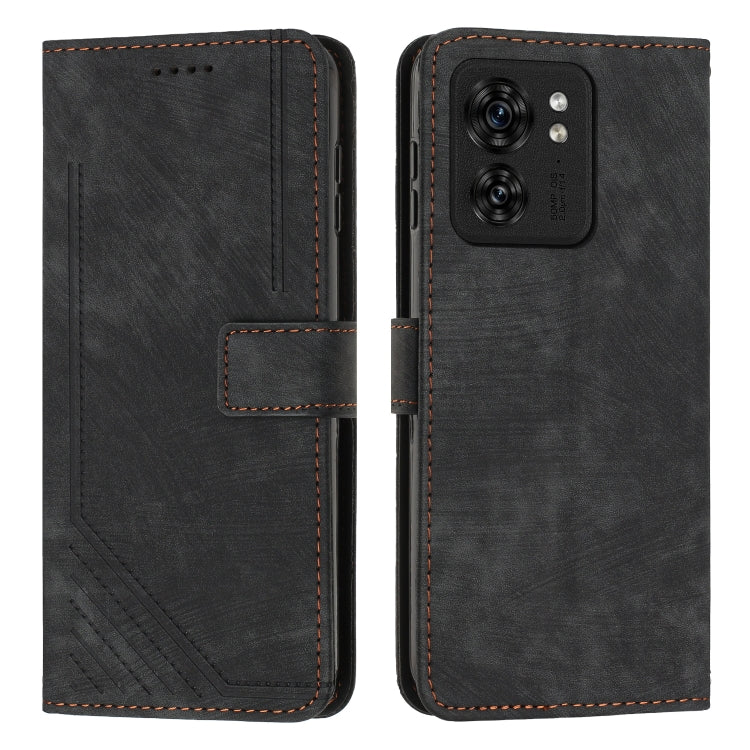 Funda de Cuero para Motorola Edge 40 con Patrón de Rayas y Cordón (Negro)