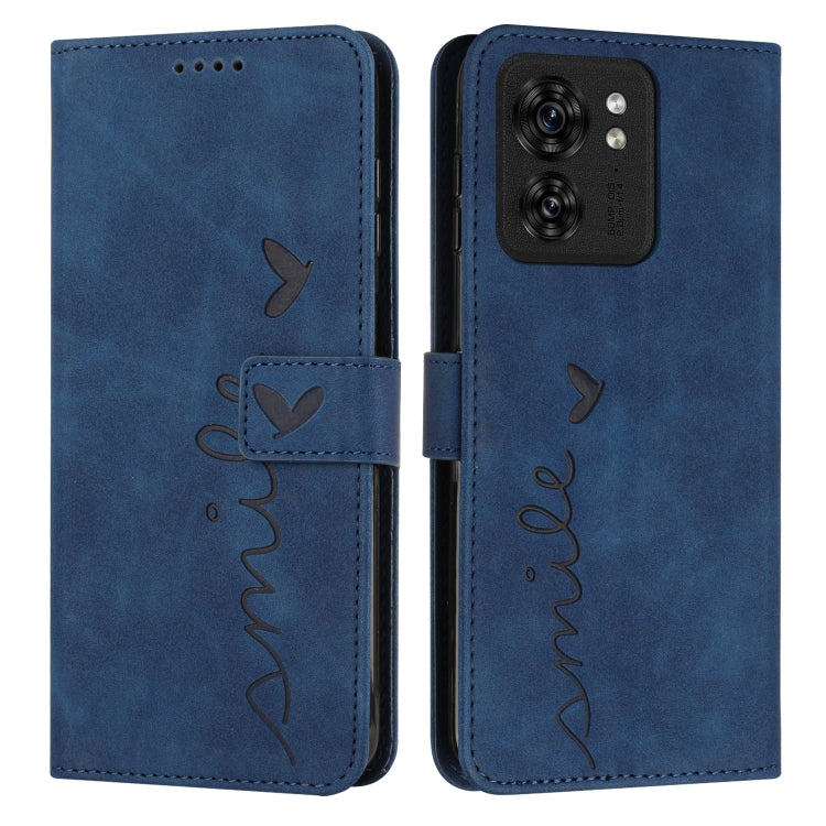 Funda de Cuero para Motorola Edge 40 Skin Feel con Patrón Corazón (Azul)