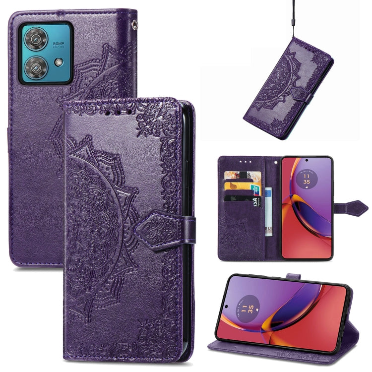 Funda para Motorola Moto G84 de Cuero con Relieve Flores Mandala (Púrpura)